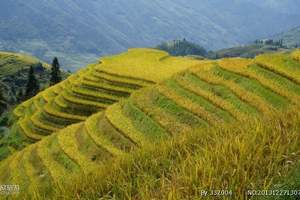 龙胜县龙胜梯田群规模宏大,全部的梯田分布在海拔300-1100米之间,最大坡度达50度,一层层从山脚盘绕到山顶,层层叠叠,高低错落。其线条行云流水,其规模磅礴壮观。是桂林旅游的一个重要组成部分。